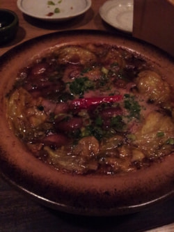 ホタルイカのアヒージョ。熱々!バケットをつけて頂きます。