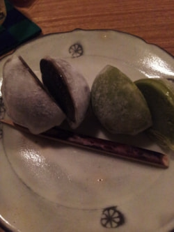 デザートは星火雪見大福。抹茶とほうじ茶のお味。