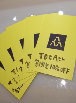 人気のあるお店なので通常そこまでOFFしたりしないんですが、TOCAとご近所さんと言うことでご了承いただきました。